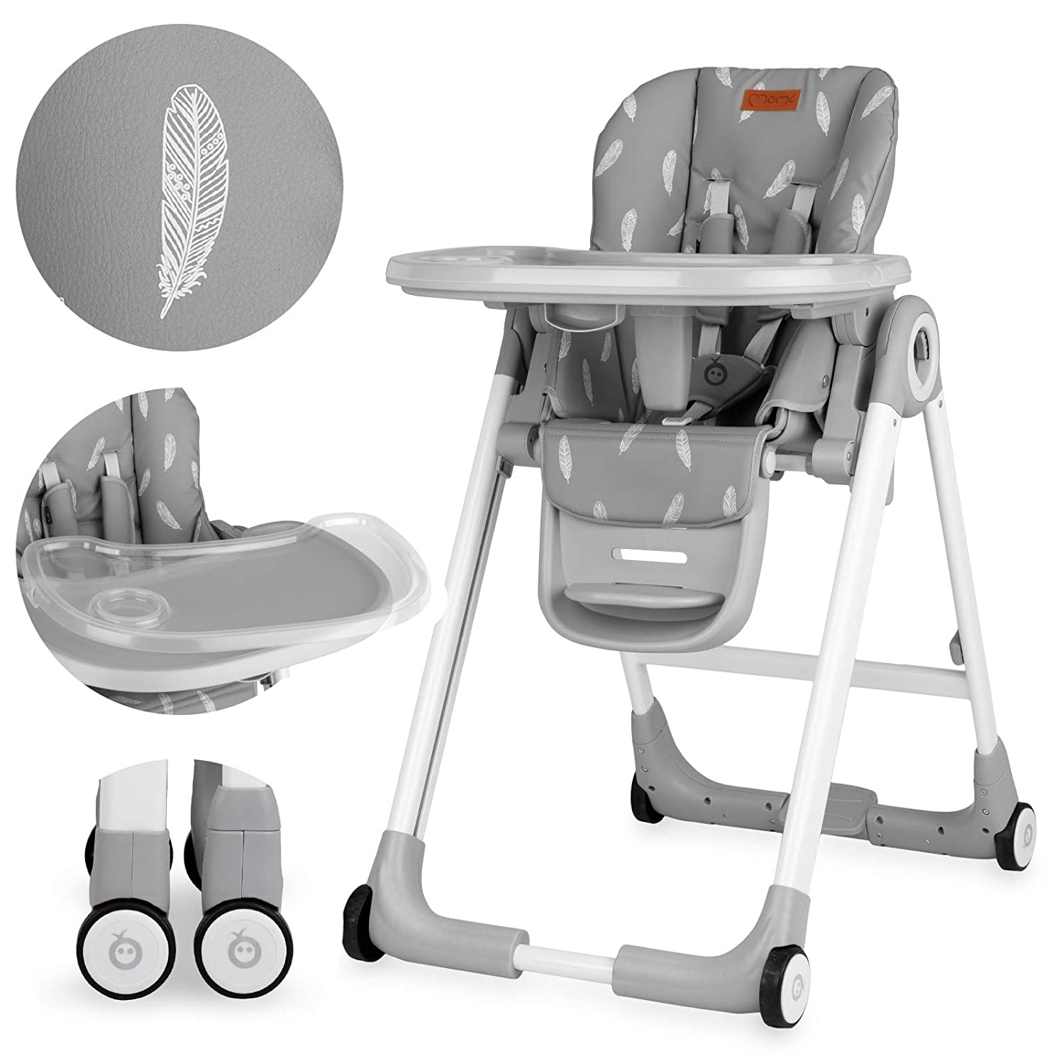 - Material: picioare metalice, scaun si tava din plastic, husa din piele ecologica