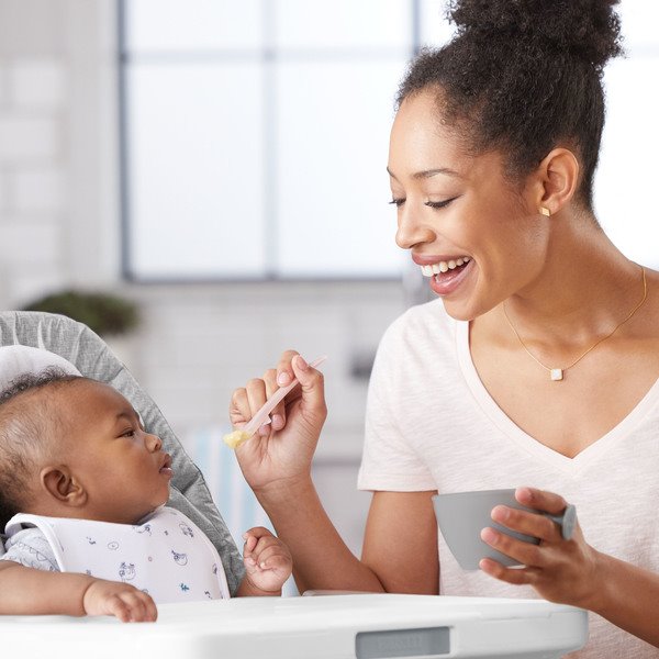 - Marginea speciala a spatulei ajuta la stergerea alimentelor de pe fata bebelusului;