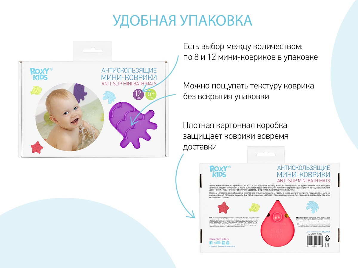 Covorașele de baie mini SEA ANIMALS de la ROXY-KIDS sunt fabricate în Rusia din material TPR modern și sigur.