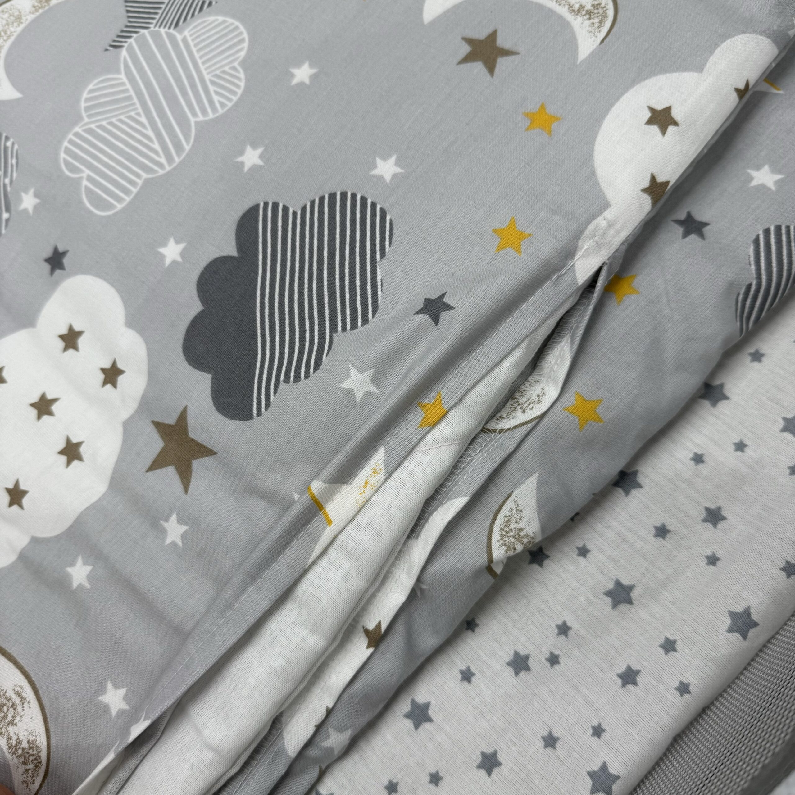 - Siguranță și confort: Materialele hipoalergenice și respirabile protejează pielea delicată a copilului, asigurând un mediu sănătos pentru somn. 100% bumbac