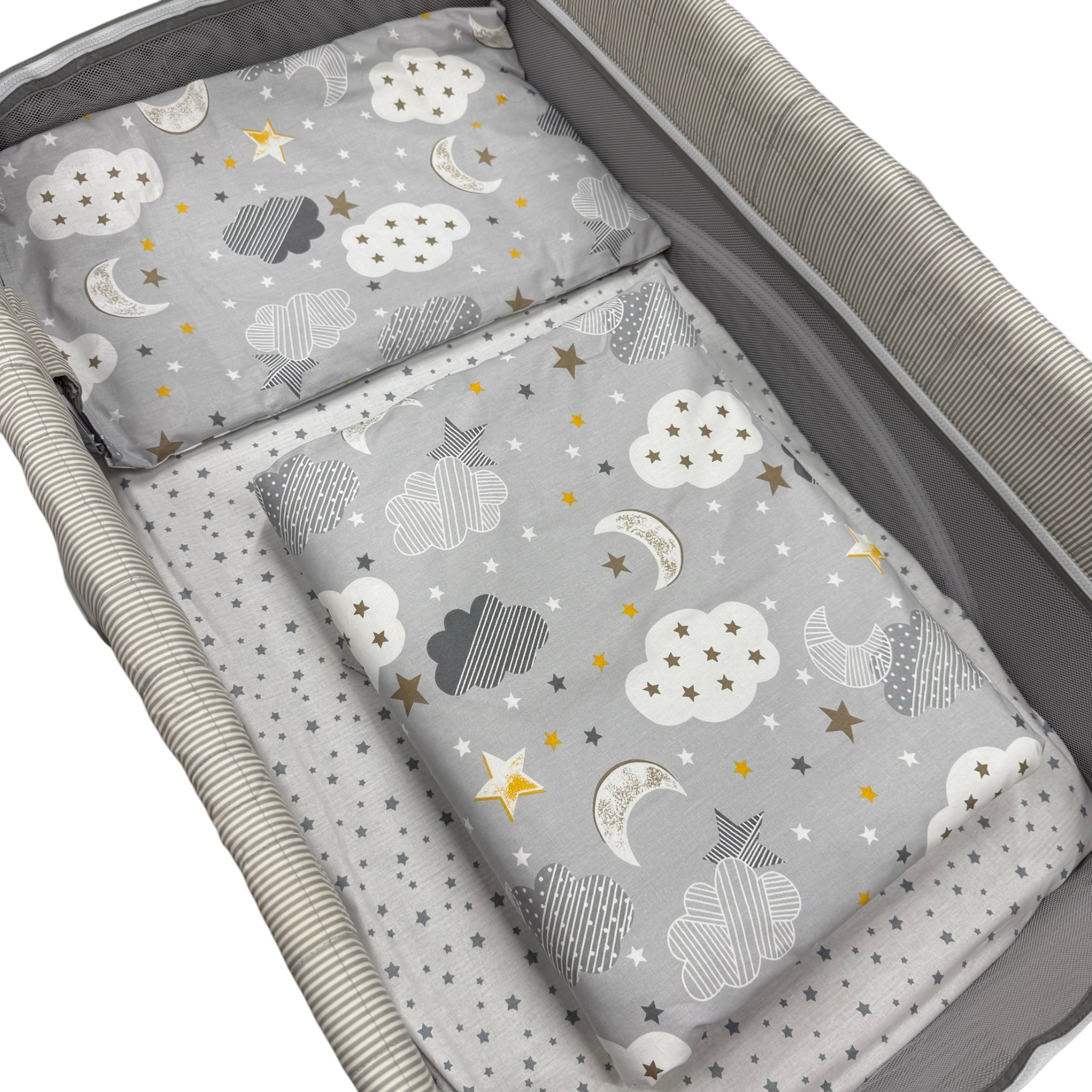 Descoperă setul de lenjerie din 5 piese pentru pătuțul Co Sleeper, creat special pentru a asigura un somn liniștit și confortabil pentru copilul tău.