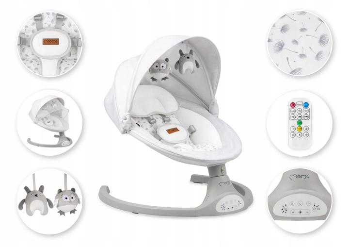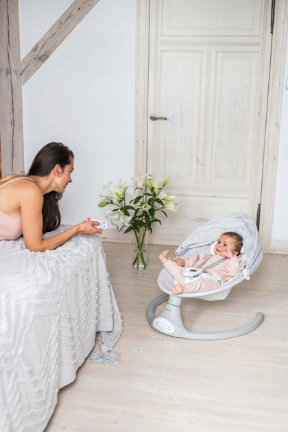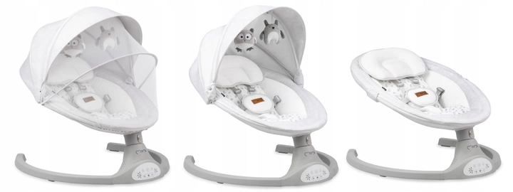 Acesta simuleaza o miscare labirintica in timp ce se balanseaza, ceea ce reprezinta un mare beneficiu pentru dezvoltarea echilibrului si a coordonarii motorii. Cu un temporizator, puteti seta o durata de leganare de 8, 15 sau 30 de minute, cu 5 forte de leganare diferite. De asemenea, este complet sigur de utilizat datorita centurii de siguranta in 5 puncte. Acesta are un modul Bluetooth care va permite sa redati melodiile preferate prin simpla conectare la telefon.