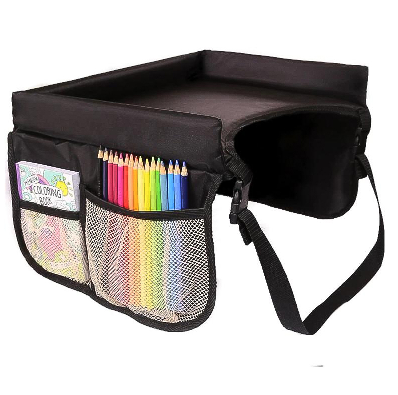 Ideală pentru plimbări şi călătorii (maşină, tren, avion). Pereţii laterali împiedică obiectele să cadă jos. Are buzunare laterale mari din plasă elastică pentru diverse accesorii. Este prevazută cu o curea reglabilă pentru o buna fixare.