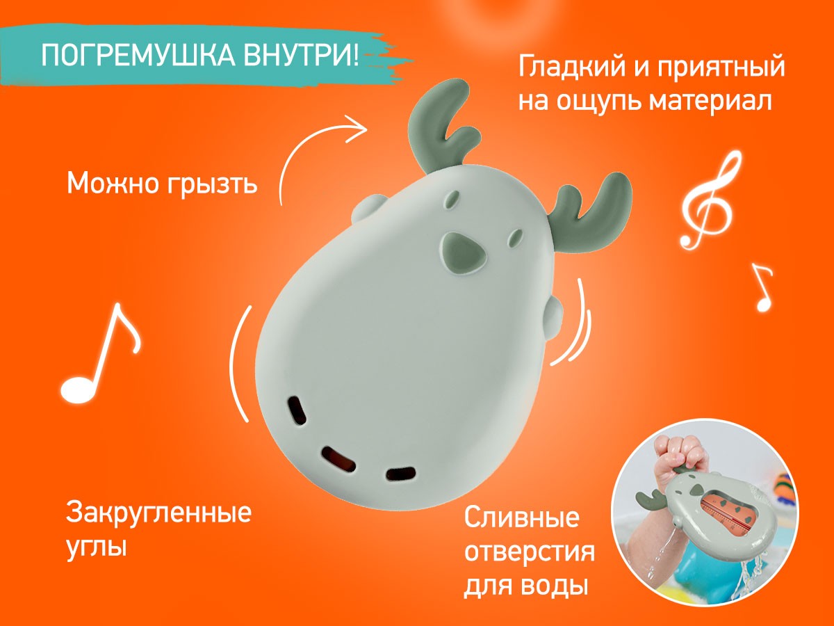 Zrangăneaua din interior încântă bebelușul în timpul procedurilor de apă și creează efecte sonore suplimentare, făcând scăldatul și mai distractiv și interesant!