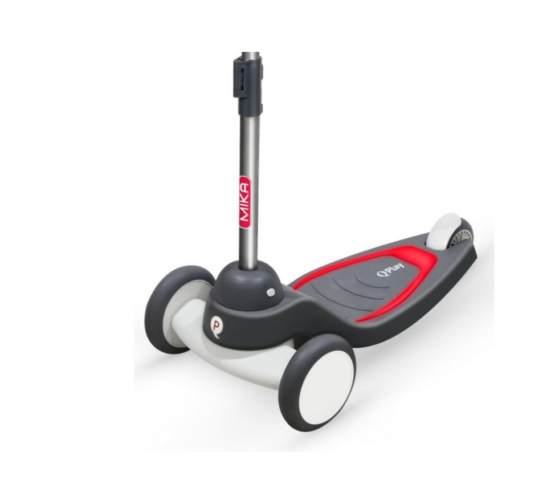 Scuter QPlay Mika cu o platformă largă și confortabilă. Are un design elegant și funcții de iluminare distractive, perfecte pentru aventurile în aer liber.