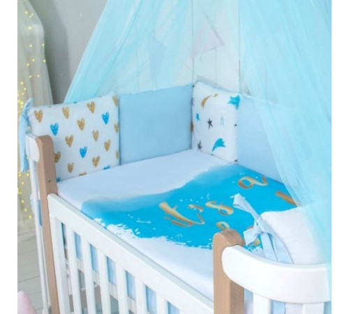 Lenjeria de pat Veres „It s a boy!” este confectionata din bumbac natural cu o buna permeabilitate la aer, sigura pentru pielea sensibila a copiilor, deoarece nu provoaca reactii alergice la utilizare, are rezistenta mare la uzura si durabilitate, si isi pastreaza aspectul si rezistenta cusaturilor la spalare frecventa. Husa de pilota cu fermoar este comoda si practica de utilizat. Umplutura pentru bara de protectie – holofiber – este hipoalergenică, își păstrează bine forma, iar pernele și păturile – fibră moale – moi și plăcute la atingere, asigură „proprietăți de respirație”, termoreglare. Patura este matlasata, ceea ce asigura siguranta formei produsului dupa spalare. Toate materialele de așternut sunt certificate și respectă cele mai înalte standarde de mediu.