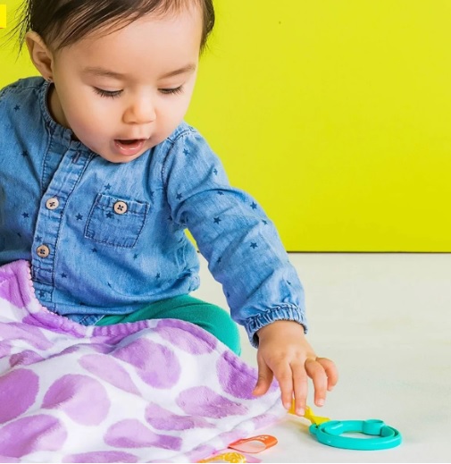 Веселое одеяло Little Taggies от Bright Starts будет под рукой у вашего малыша, и он не потеряет его. Благодаря крепёжному кольцу плед можно прикрепить к коляске или коляске, чтобы у малыша оно было практически всегда, когда ему это понадобится. Благодаря небольшому размеру он идеально подходит для прогулок.
