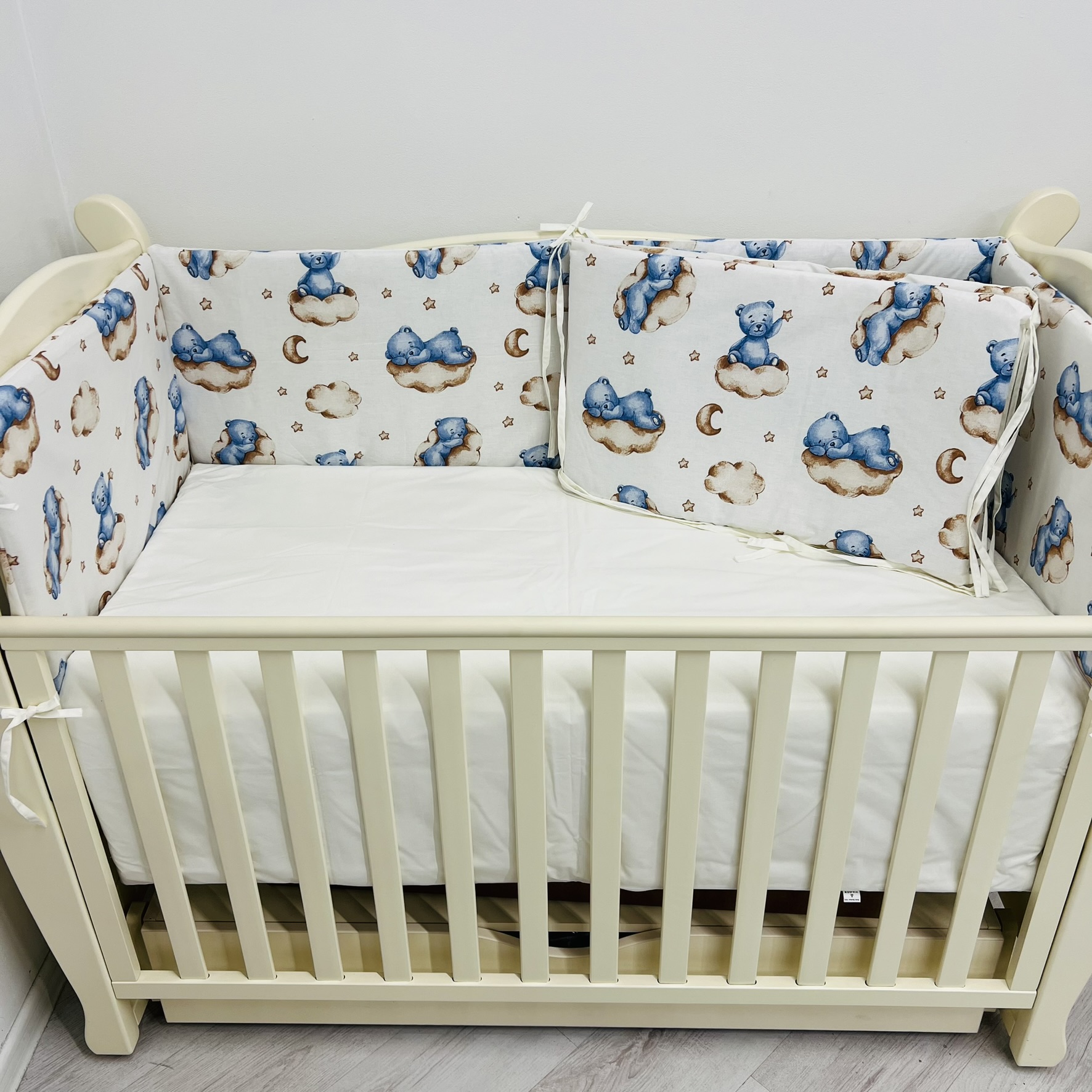 Съёмные чехлы бортиков на молнии и выполнены из 100% турецкого хлопка