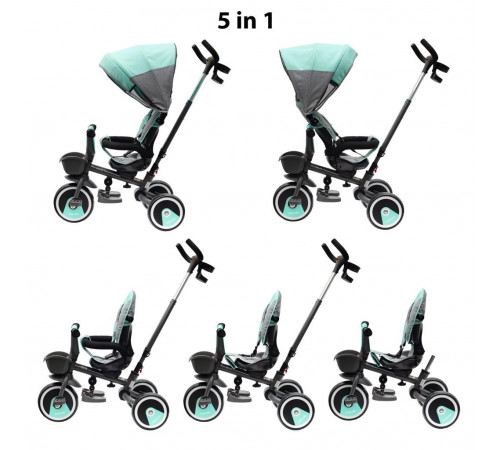 Трицикл Baby Mix 5 в1 RELAX растет одновременно с ребенком. Трициклом может управлять как ребенок, так и родитель с помощью ручки управления. При снятии ручки управления, капюшона и др. деталей он трансформируется в обычный трёхколёсный велосипед.. У него современная конструкция, удобное сиденье эргономичной формы, которое поворачивается на 360 градусов, что позволяет ребенку двигаться в направлении движения или против него. Он изготовлен из высококачественных и прочных материалов, а складывающаяся конструкция позволяет без проблем перевозить трехколесный велосипед, например, в багажнике автомобиля. Его сборка очень проста, интуитивно понятна и не требует инструментов. Комфорт и безопасность во время вождения обеспечивают съёмный бампер, пятиточечные ремни безопасности, удобные подставки для ног и колеса из упрочненной пены EVA, которые отлично поглощают удары, обеспечивают отличное сцепление и не требуют надувания. Есть практичная корзина для хранения игрушек или предметов первой необходимости для ребенка.