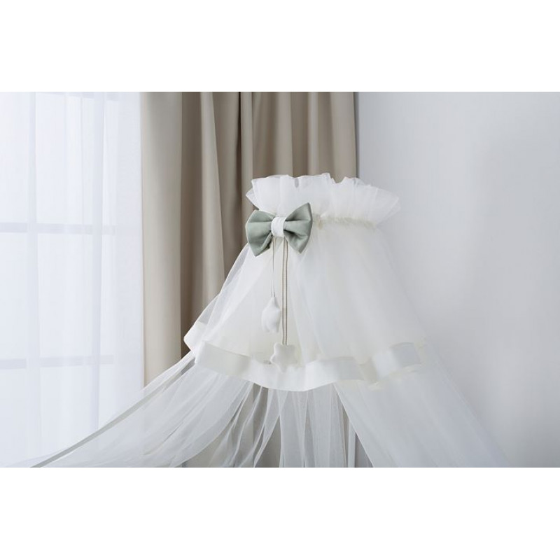 Балдахин для детской кроватки Бамбино – необычайно изысканный и изящный, он не только позволит украсить спальное место Вашей крохи, но и защитит малыша от яркого света, сквозняков, нежелательных взглядов и назойливых насекомых. Легко выдерживает многочисленные машинные стирки и не теряет после них объем и свои уникальные антиаллергенные и антибактериальные свойства.