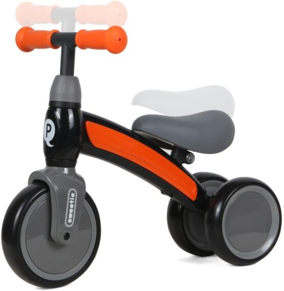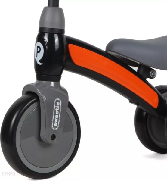 У Sweetie задние двойные колеса — всего их 3, они обеспечивают исключительную устойчивость, шины из пены EVA бесшумны и позволяют использовать транспортное средство как дома, так и на улице. Регулируемый руль и седло позволяют подогнать автомобиль под рост ребенка. Обтекаемая форма снижает сопротивление воздуха, что приводит к более высокой скорости движения. По правилам физики, чем быстрее движется транспортное средство/велосипед, тем легче ему сохранять вертикальное положение. Мягкое и профилированное седло и нескользящие ручки обеспечивают комфорт и удобство использования.