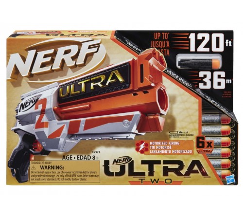 Полуавтоматический револьвер Nerf Ultra Two обеспечивает быструю перезарядку. Цилиндр с 6 стрелами открыт сзади — вы можете заглянуть внутрь, чтобы узнать, сколько стрел осталось до перезарядки. С этим бластером вы почувствуете себя героем из какой то видеоигры.