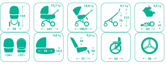 ГАБАРИТЫ КОЛЯСКИ BEBETTO TORINO