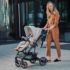 И люлька, и прогулочный блок оснащены вентиляцией. Раздвижной навес регулируется в зависимости от падения солнечных лучей и имеет дополнительную складную крышку для увеличения тени.
