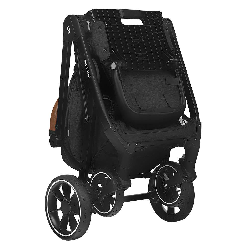 Коляска имеет амортизацию как на передних, так и на задних колесах. Все они изготовлены из стойкой к проколам пены UP. Передние колеса также имеют функцию блокировки для движения прямо, а задние колеса имеют удобный тормоз.