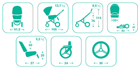 -непробиваемые колеса Flexy Wheels обеспечивают высокий комфорт и амортизацию ударов во время прогулок по трудной дороге;
