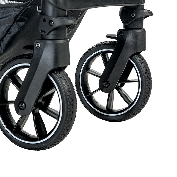 Коляска создана для родителей и детей, которые хотят интенсивно использовать коляску ежедневно в течение года. Коляска имеет прочную раму на не требующих обслуживания больших колесах с отличной амортизацией, которая хорошо справляется со всеми неровностями тротуара. Оснащена просторным сиденьем и очень большим капюшоном с двойной системой защиты UV50+ (наружная ткань и специальная внутренняя ткань).