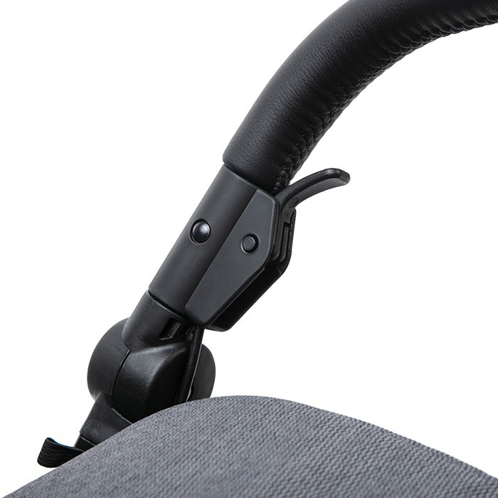 - Коляска имеет уникальный эргономичный и очень удобный ручной тормоз.