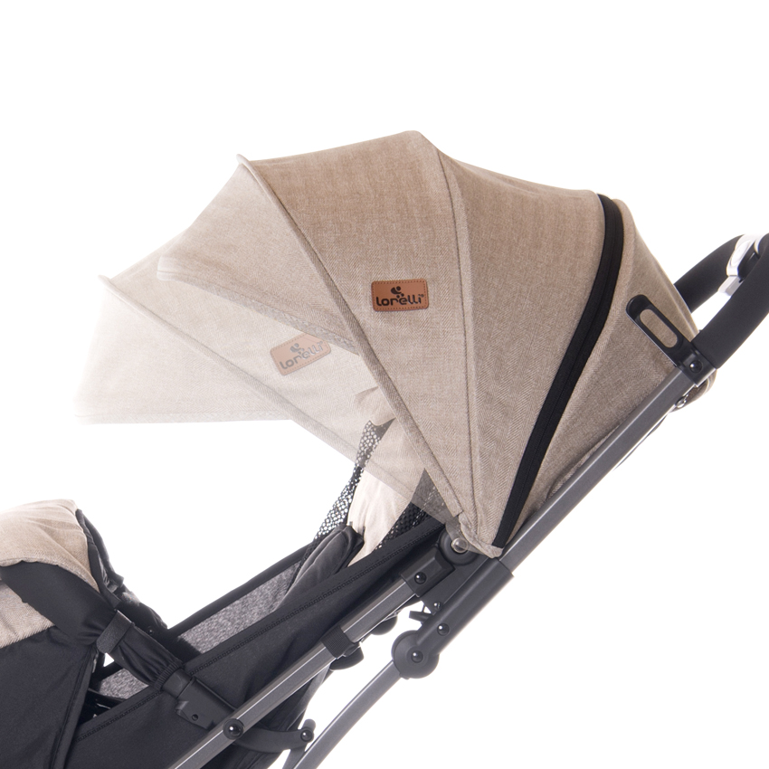 Супер лёгкая прогулочная коляска, которую можно использовать практически с рождения, благодаря опускающейся горизонтально спинке.