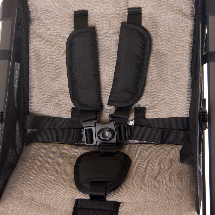 Супер лёгкая прогулочная коляска, которую можно использовать практически с рождения, благодаря опускающейся горизонтально спинке.
