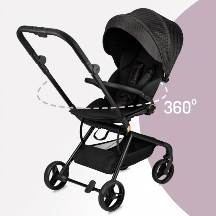 | MoMi ADELLE – очень легкая, маневренная и эргономичная коляска, которая идеально адаптируется к вашим потребностям и потребностям вашего ребенка. Кроме того, перед складыванием он имеет двойной замок. | Увеличенный навес защитит вашего ребенка от сильного дождя или солнца. | Возможность вращения на 360 градусов позволяет расположить ребенка вперед или назад по направлению ходьбы. |