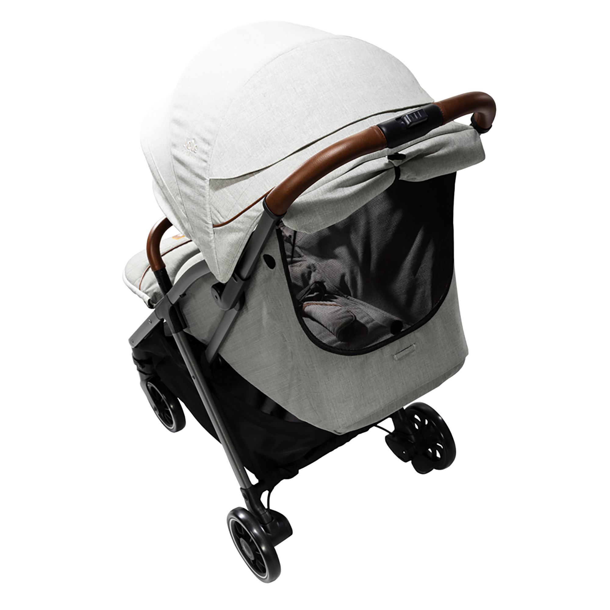 - Сетчатое окошко позади коляски для вентиляции и наблюдения за малышом.
