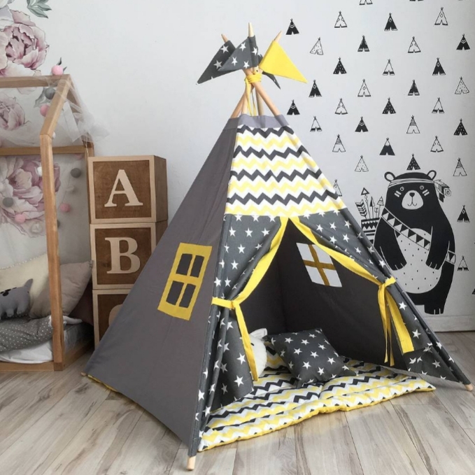 Детские игровые домики или вигвамы (типи, tepee) — мечта каждого ребенка о своём укромном месте. Легко собирается и разбирается. Можно использовать и дома, и на улице.