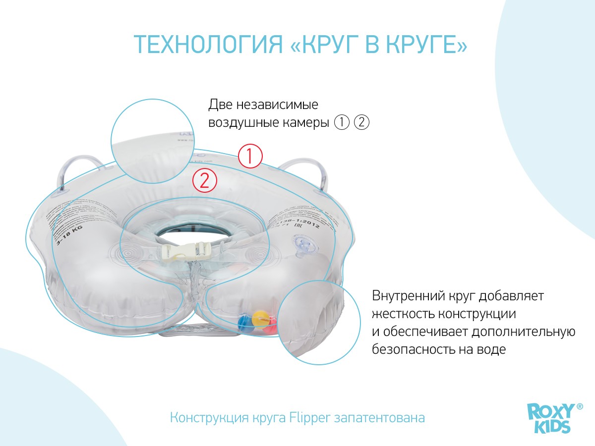 Для дополнительной безопасности малыша круг Flipper имеет сглаженный внутренний шов, который не поранит шею.