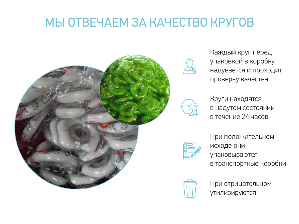 В конструкции круга предусмотрены выемка для подбородка малыша и ручки, благодаря которым родители смогут придерживать ребенка, определения направление купания.