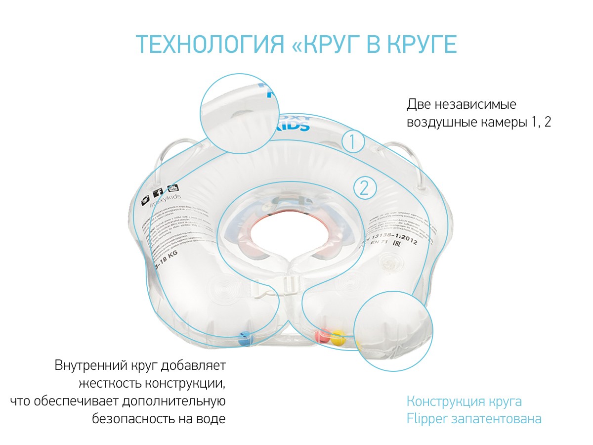 Для дополнительной безопасности малыша круг Flipper имеет сглаженный внутренний шов, который не поранит шею.
