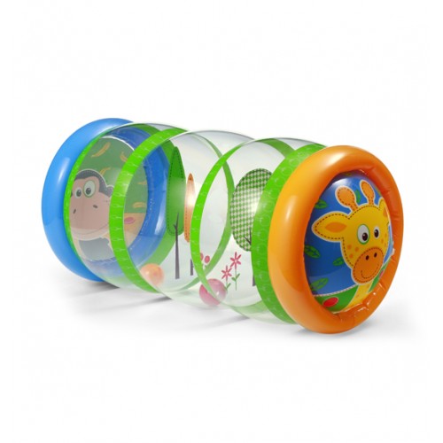 Надувной развивающий валик, мягкий и разноцветный, с гремящими шариками. Развивающий валик помогает ребёнку на важных этапах развития двигательных навыков (умение сидеть, ползать, вставать), благодаря чему развивает двигательную координацию и чувство равновесия. Внутри валика находятся привлекательные изображения и отделения, способствующие играм с перемещением шариков между отделениями. Валик изготовлен из безопасных, прочных и нетоксичных материалов.