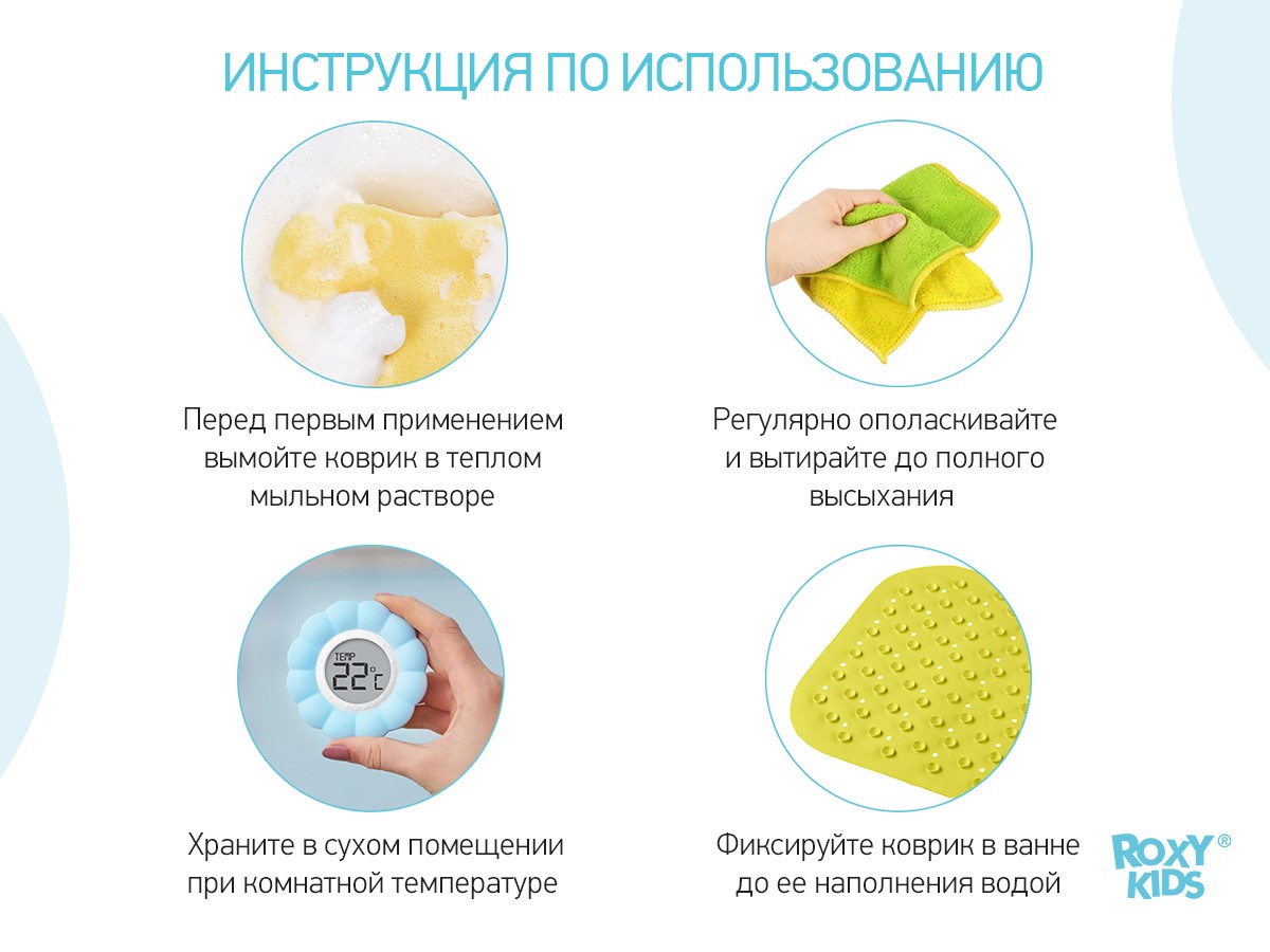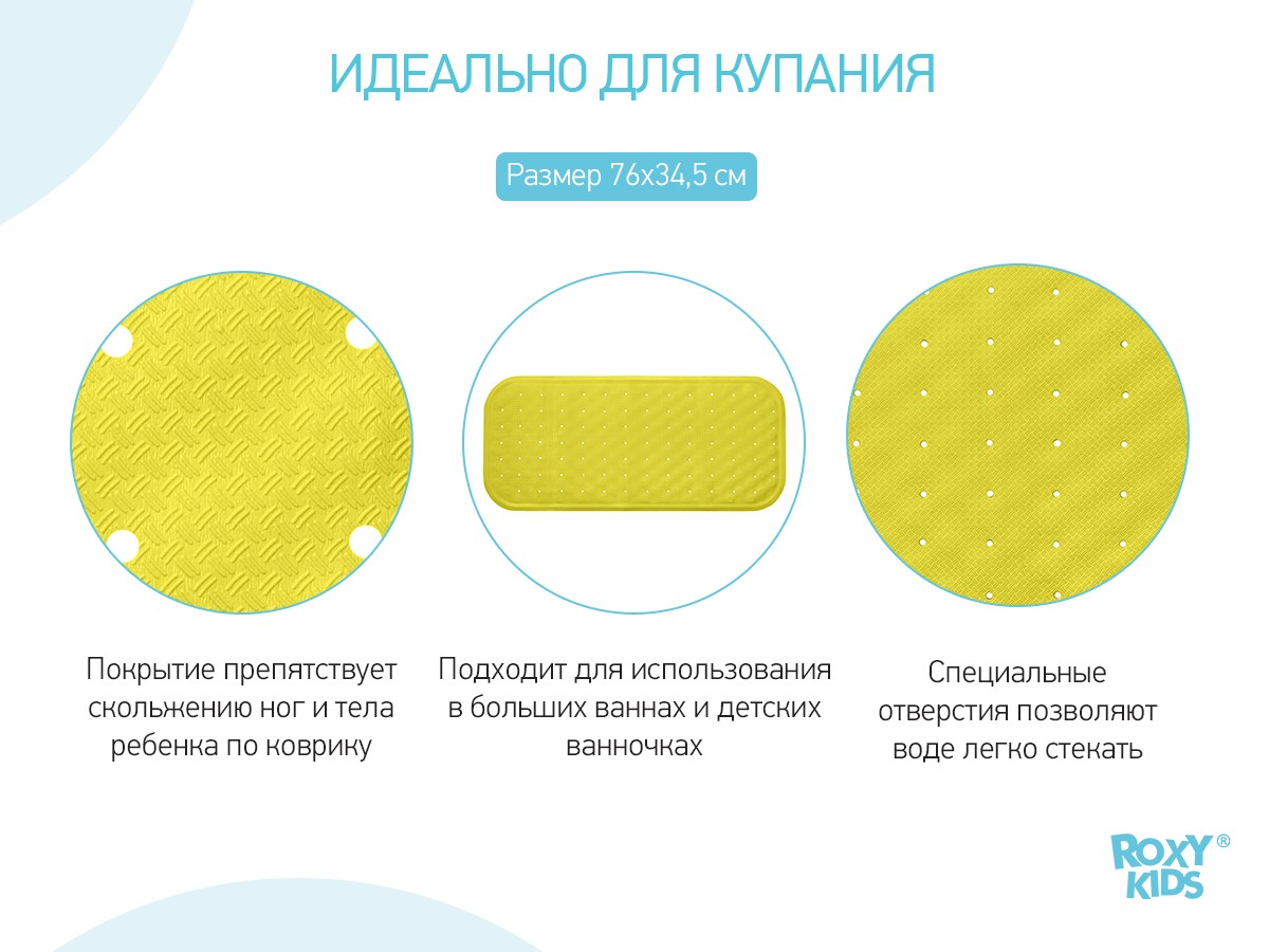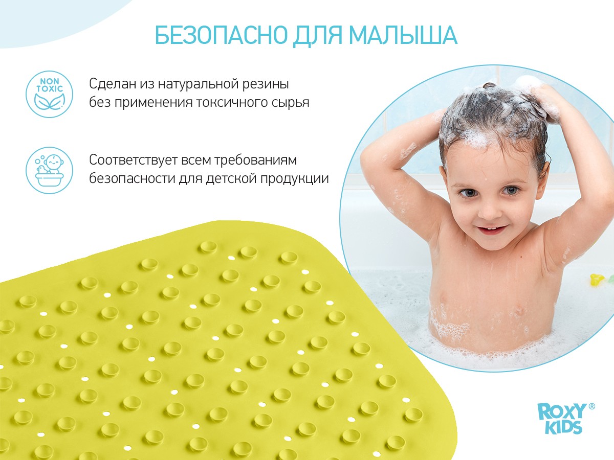 Оптимальный размер коврика делает его доступным для использования в любых ваннах и детских ванночках.