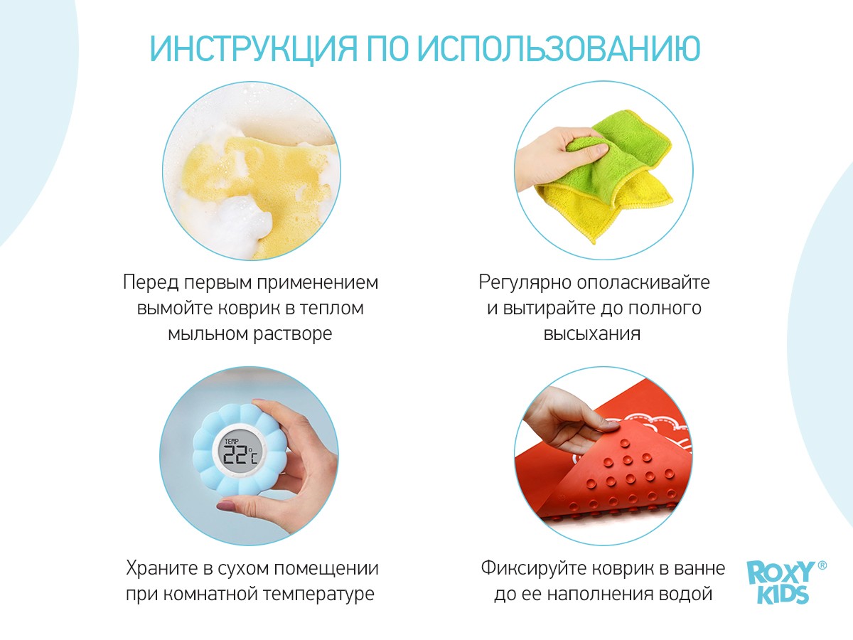 Антискользящий коврик для ванной ROXY-KIDS обеспечит комфортное и безопасное купание вашего малыша.