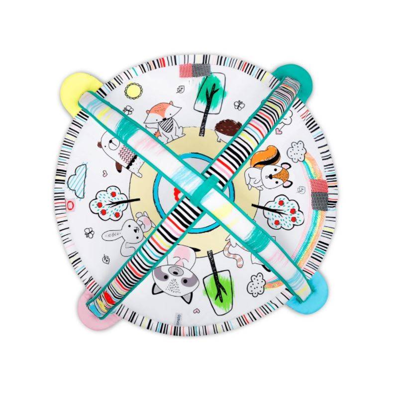 Paula Plus – это обучающий коврик, который знакомит малыша с миром форм и цветов. Подвесные звуковые игрушки и шуршащее дно поддерживаются интерактивными обручами, играющими музыку и представляющими световые шоу.