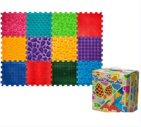 Массажный коврик Ortek «Mega Mix» состоит из 12 пазлов, производится из гигиеничного, гипоаллергенного материала на основе ПВХ.