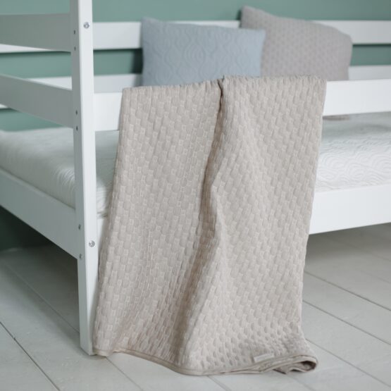 В основе пледа Eco Soft Cotton, особая разновидность очень мягкого натурального хлопка. Он хорошо пропускает воздух и поддерживает комфортную температуру. А специальный способ создания узора — жаккардовое переплетение нитей без окрашивания (!) — залог того, что ткань пледа сохранит цвет после многократных стирок. Кроме того, ткань очень экологичная, не вызывает аллергии.