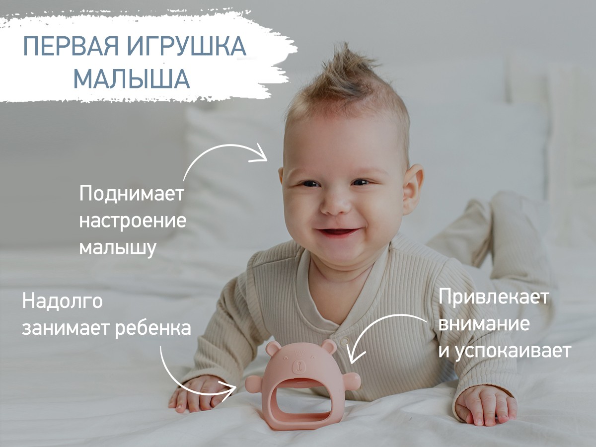 Прорезыватель в форме мишки сделан из гипоаллергенного пищевого силикона и подходит для ежедневного использования.