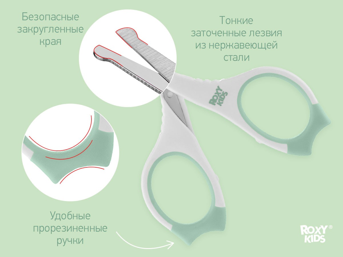 Маникюрные ножницы ROXY-KIDS разработаны для ухода за ногтями новорожденных с первых дней жизни.