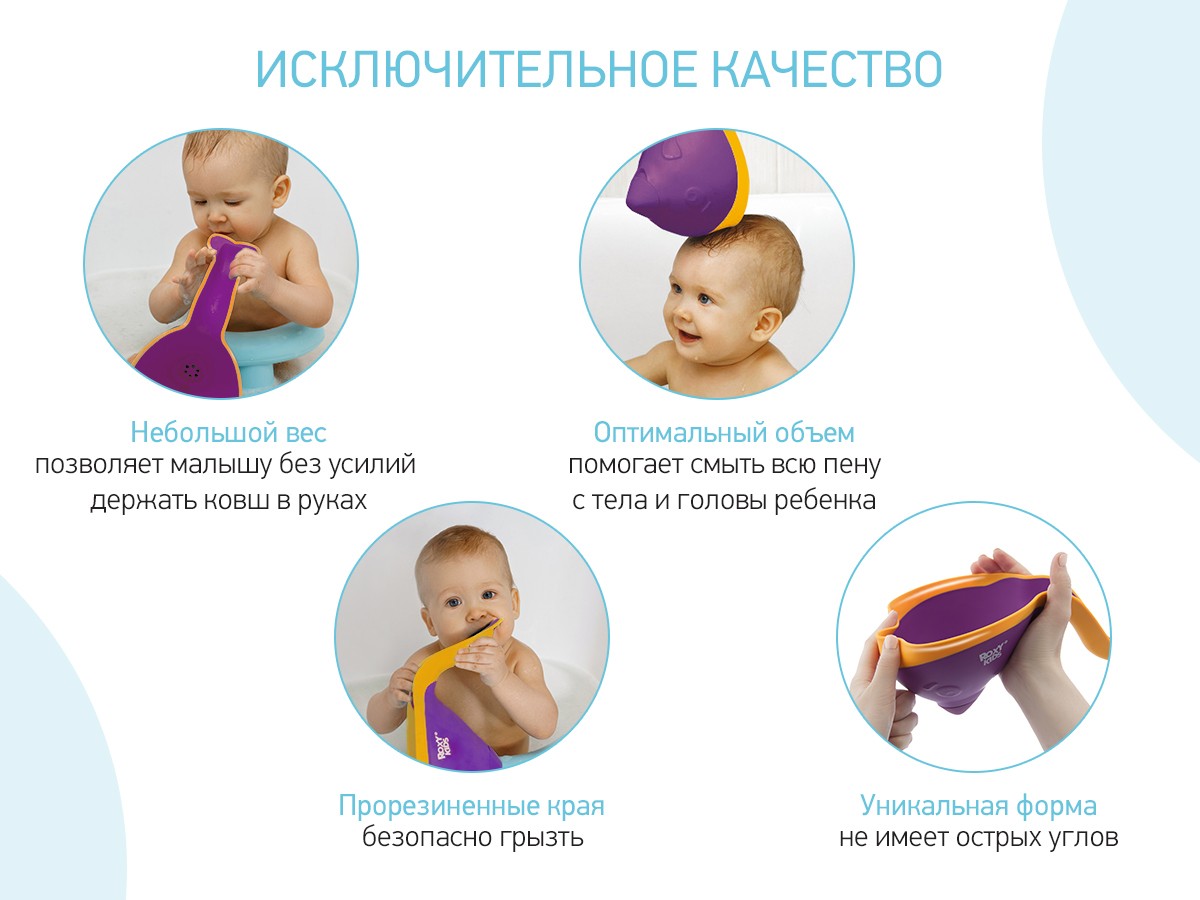 Эта опция позволяет прислонять ковш к голове малыша, чтобы вода и мыло не попали в глазки во время купания.
