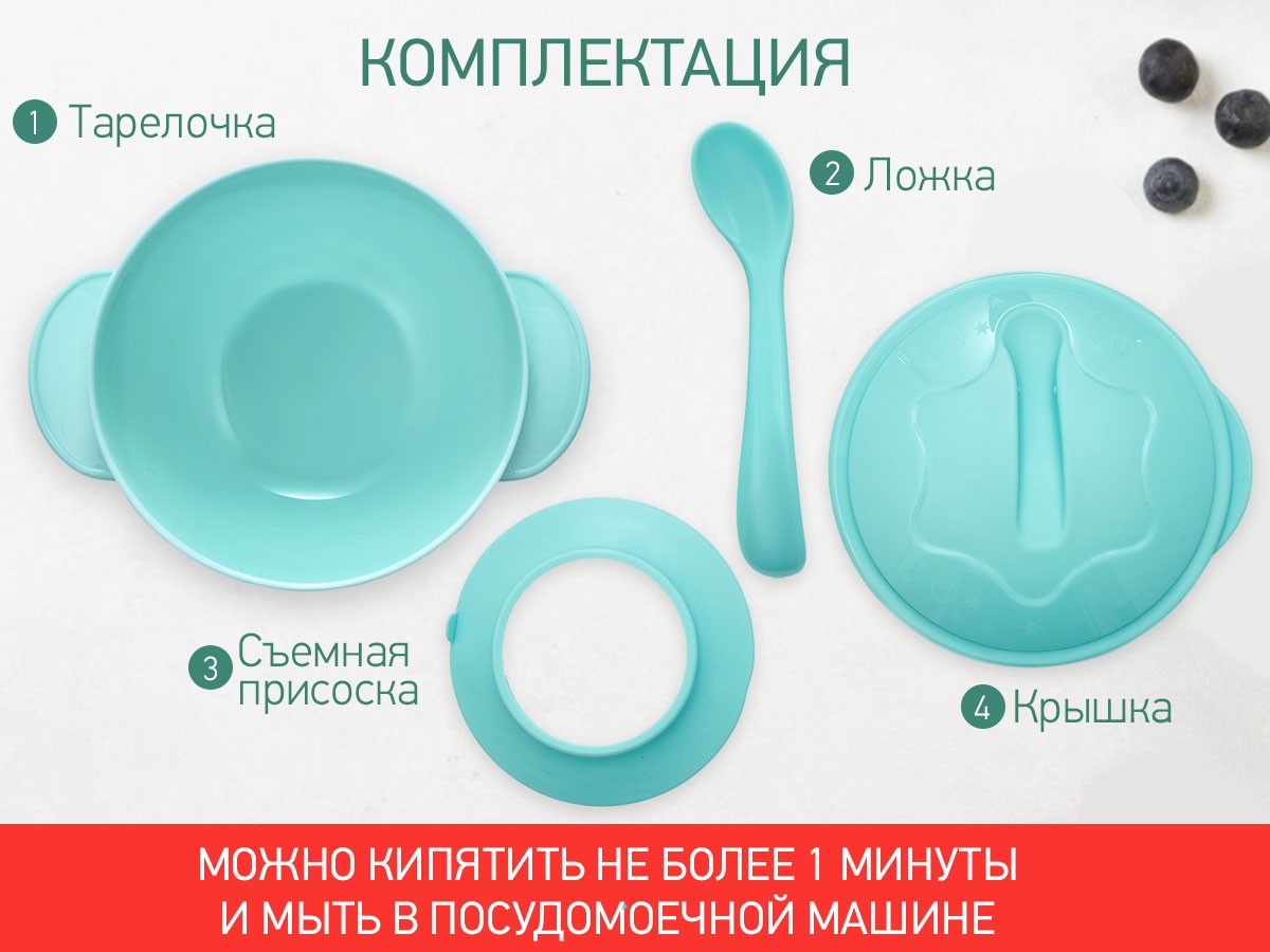 Тарелка легко крепится к столу или стульчику для кормления и останется на месте, даже если малыш совершит неосторожное движение рукой.