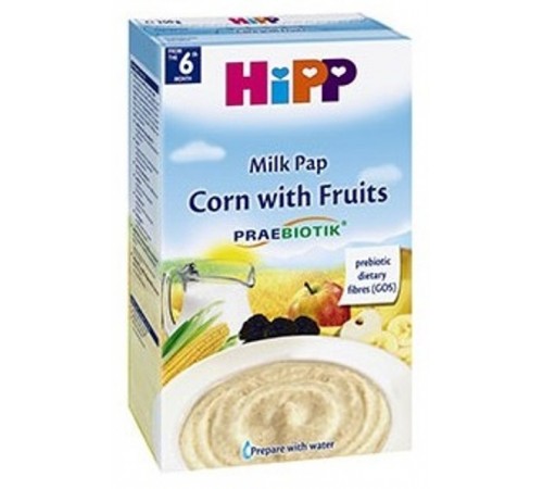 Состав: детская молочная смесь 38% (сухое обезжиренное молоко, сухая частично деминерализованная молочная сыворотка, кокосовое, рапсовое и подсолнечное масла, витамин С, железа сульфат, цинка сульфат, витамин E, ниацин, пантотеновая кислота, витамин B1, витамин A, витамин B6, витамин B2, калия йодат, фолиевая кислота, меди сульфат, витамин K, селен, витамин Д, биотин), 32% кукурузная мука, декстроза, сухая частично деминерализованная молочна сироватка, 4% висушенные измельченные фрукты (бананы 2%, яблоки 1%, чорнослив 1%), пребиотики (галактоолигосахариды из лактозы), сухое обезжиренное молоко , полисахариды, кальция карбонат, экстракт из яблок, витамин B1, витамин A, витамин D. Не содержит глютен.