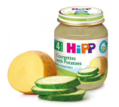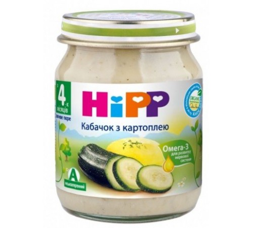 Готовое к употреблению овощное пюре из БИО-кабачка и БИО-картофеля.