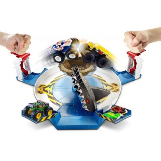 Устрой настоящую битву монстров-внедорожников! Нужно быть очень осторожным, ведь цена победы очень высока: победитель получает трофей, а вот противнику повезет меньше — его съест акула! Размести соперников на противоположных пусковых установках и столкни их в увлекательной битве на выживание. В набор входят 2 машинки: одна — машинка-внедорожник серии «Racing Truck», а другая — уникальная пластиковая машинка для краш-тестов «Crash Recruit». Дети смогут проверить свои силы, соревнуясь снова и снова!