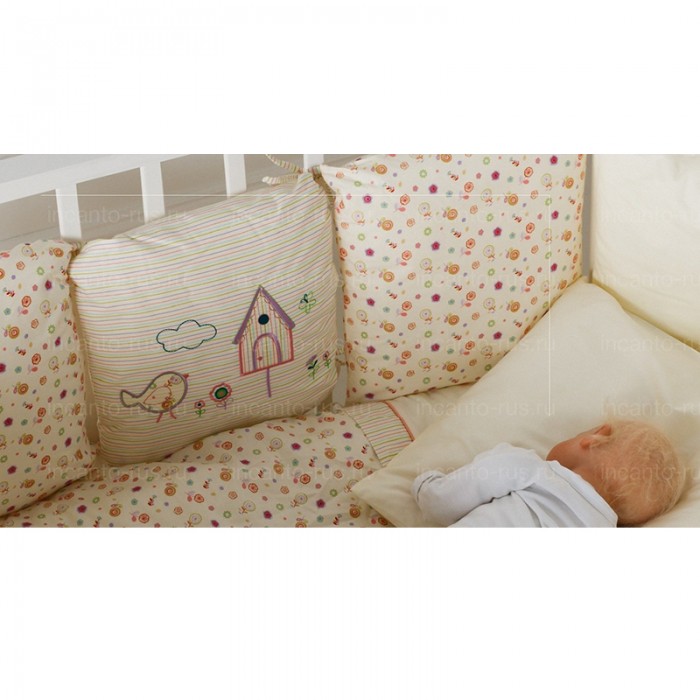 - Бортик из 12 подушек размером 30х30 см, со съемными наволочками.