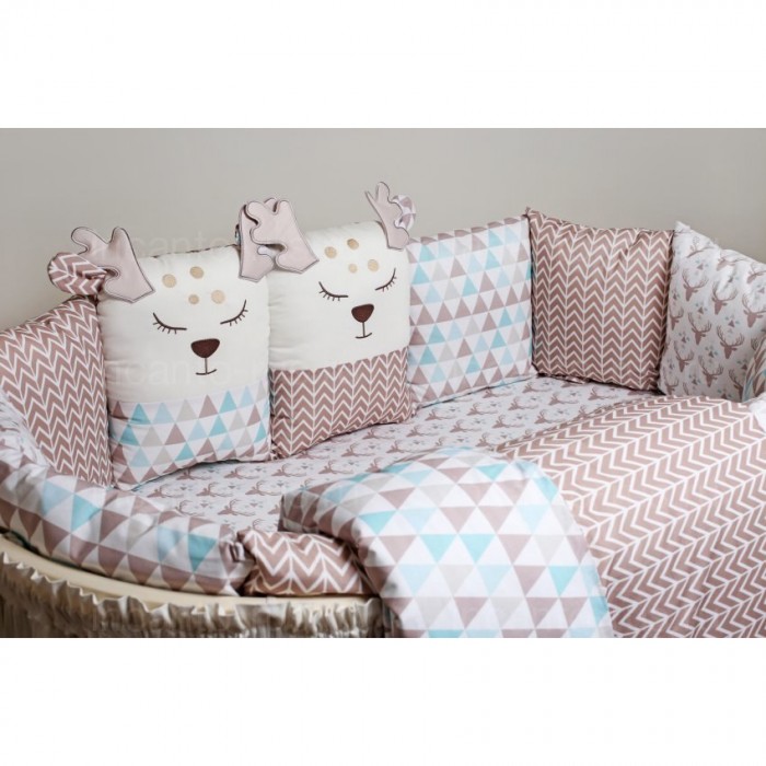 - Универсальный комплект, подойдёт для использования в кроватке любой формы(классическая, круглая, овальная).