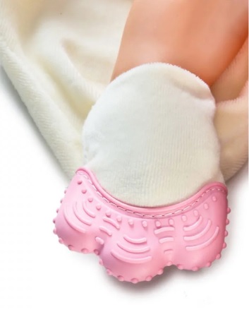 — К одному из концов игрушки прикреплена мягкая силиконовая перчатка, которая помогает снять боль в деснах и защищает малыша от царапин.