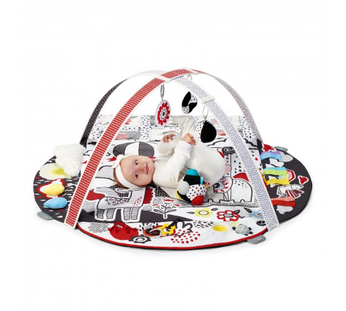 Коврик имеет регулируемые дуги с удобным слайдером, а подвесные игрушки можно свободно передвигать и размещать где угодно.