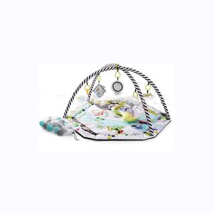 — 2 съёмные арки с 7 игрушками: зеркало, шелестящая книга, 2 прорезывателя, погремушка, 2 плюшевые игрушки.