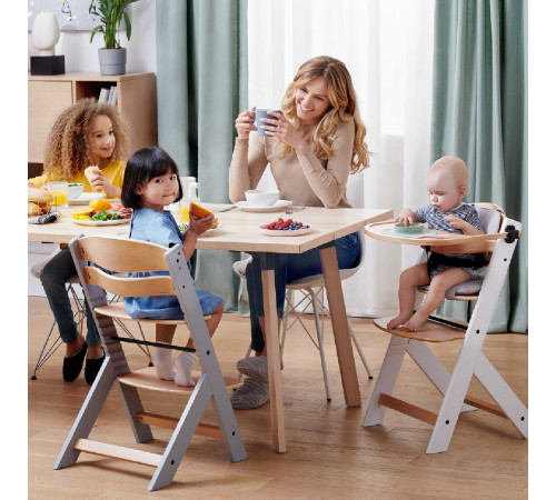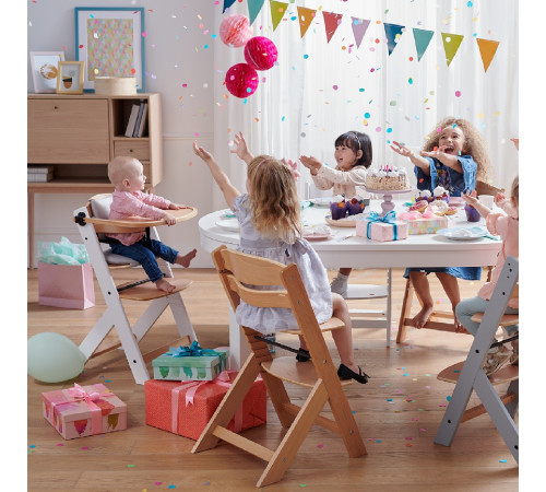Этот вневременной предмет мебели является как безопасным и практичным стульчиком для кормления, так и эргономичным стульчиком для детей старшего возраста. Как это возможно?