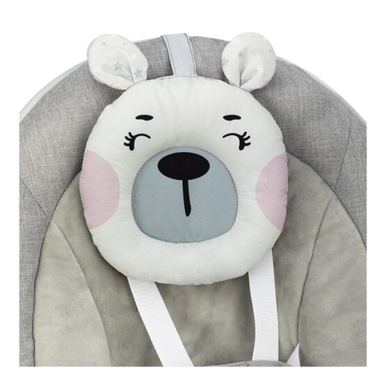 MoMi LISS имеет удобное и просторное сиденье, отделанное нежным и прохладным материалом. Также имеются 5-точечные ремни безопасности и широкий ремень для ног. | Панель управления оснащена кулисным регулятором, на выбор доступно 5 скоростей. Рокер также воспроизводит 8 песен и имеет таймер, который позволяет автоматически останавливаться через 10, 15 или 30 минут. |